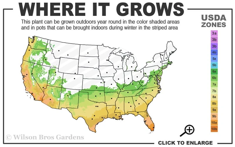 Note: For our customers who live and garden north of USDA Plant Hardiness Zone 6b, where this Eucalyptus is not winter hardy, you’ll be happy to know it can be grown in containers that can be brought indoors during winter and placed back outside when temperatures warm up in spring.